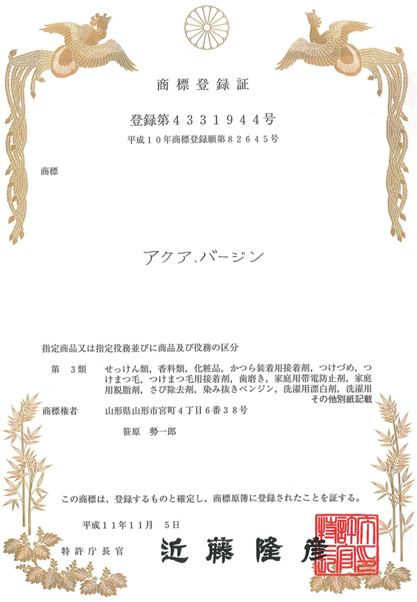 ②<商標登録証> 代替医療水の グランドウォーターPro |